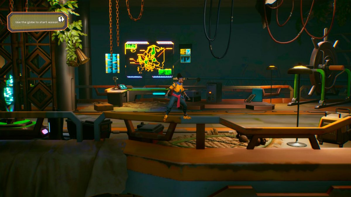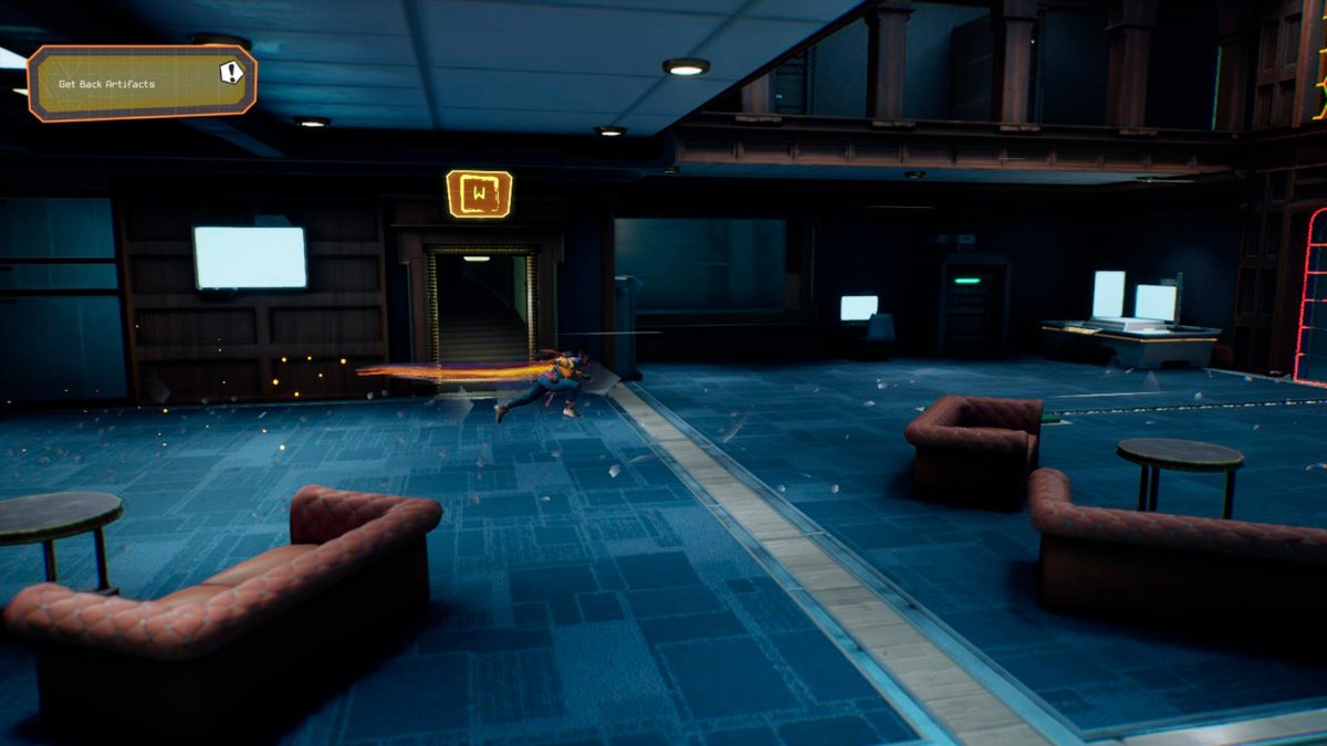 Ayuda que Nomali sea una experta en parkour y que si apretamos el botón adecuado —el izquierdo del mando, la X en un control de Xbox— cojamos impulso tras cada obstáculo. Es normal que al principio reaccionemos in extremis al toparnos con cada elemento que se interpone en nuestra carrera, pero con el tiempo fluiremos por los escenarios con gracilidad y maestría. De hecho, Relooted tiene un sistema de puntuación que invita a que busquemos realizar el atraco perfecto. No es necesario obtener una medalla de oro para continuar la historia, aunque es relativamente sencillo conseguirlo en la segunda mitad del juego, ya que son las misiones que más nos exigen una planificación meticulosa y tener claro el recorrido.