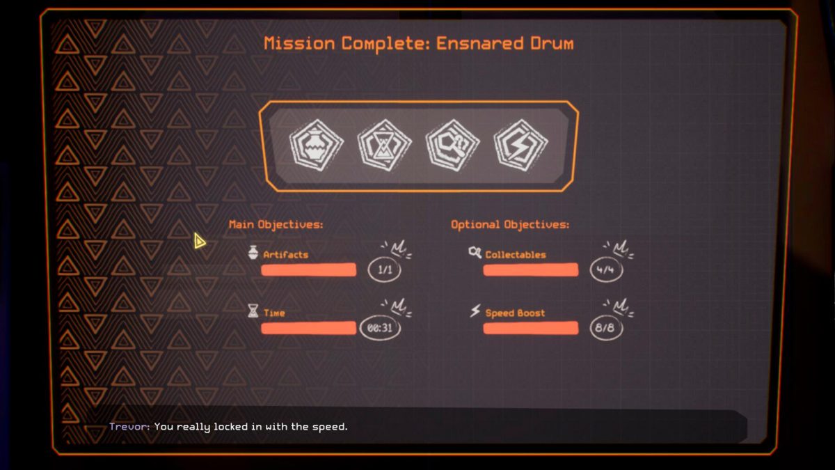 La puntuación final dependerá de haber conseguido extraer las obras de arte, los objetivos de cada misión, pero también aquellos artefactos opcionales que descubramos en la zona, lo que el juego denomina «coleccionables». Además, tendremos que hacerlo en un tiempo determinado y habiendo aprovechado un número concreto de acelerones, dos indicadores que van de la mano ya que conseguir la velocidad punta varias veces suele garantizar que el tiempo total sea menor.