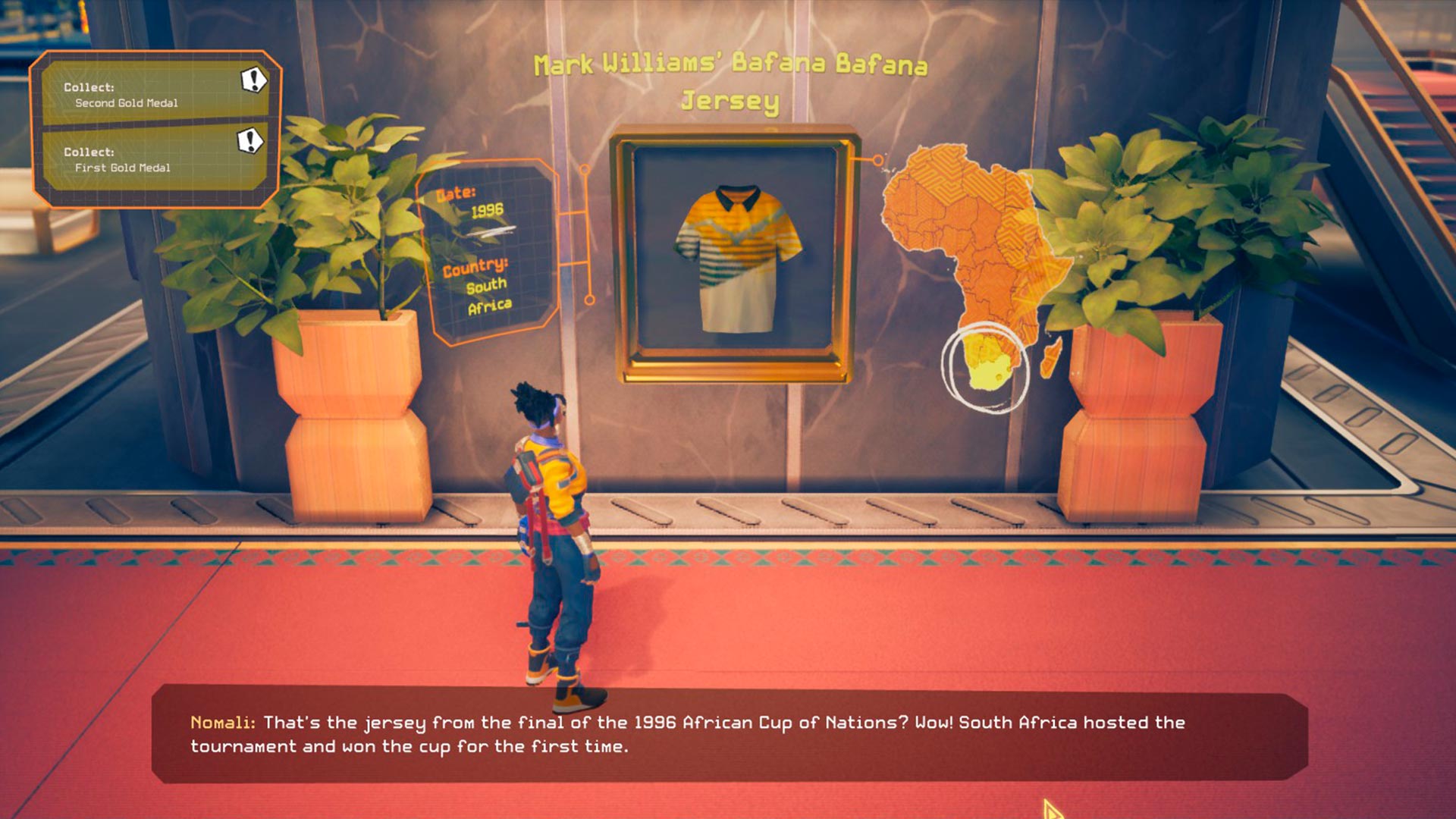 En 2024 el estudio británico Surgent Studios debutó con Tales of Kenzera: ZAU, un metroidvania en el que encarnamos a un chamán que deberá enfrentarse a una serie de deidades con el objetivo de recuperar a su padre, recientemente fallecido. Abubakar Salim abordó de esta forma el duelo, un proceso que él mismo tuvo que pasar fuera de la pantalla. En este juego hay unas secciones breves donde la acción queda al margen y la historia pasa a desarrollarse en un plano radicalmente distinto; decimos adiós a la naturaleza salvaje y nos deleitamos con un paisaje urbanístico adelantado a su tiempo, una ambientación afrofuturista que puede recordar a la capital de Wakanda de Black Panther o a la Johannesburgo de Relooted. Si bien en Marvel optaron por construir una nación africana que al librarse del expolio colonialista pudo desarrollarse hasta ser la más puntera del mundo, Nyamakop ha optado por un enfoque que no borra la destructiva acción del imperialismo, sino que busca ofrecer una pequeña victoria en forma de reparación.