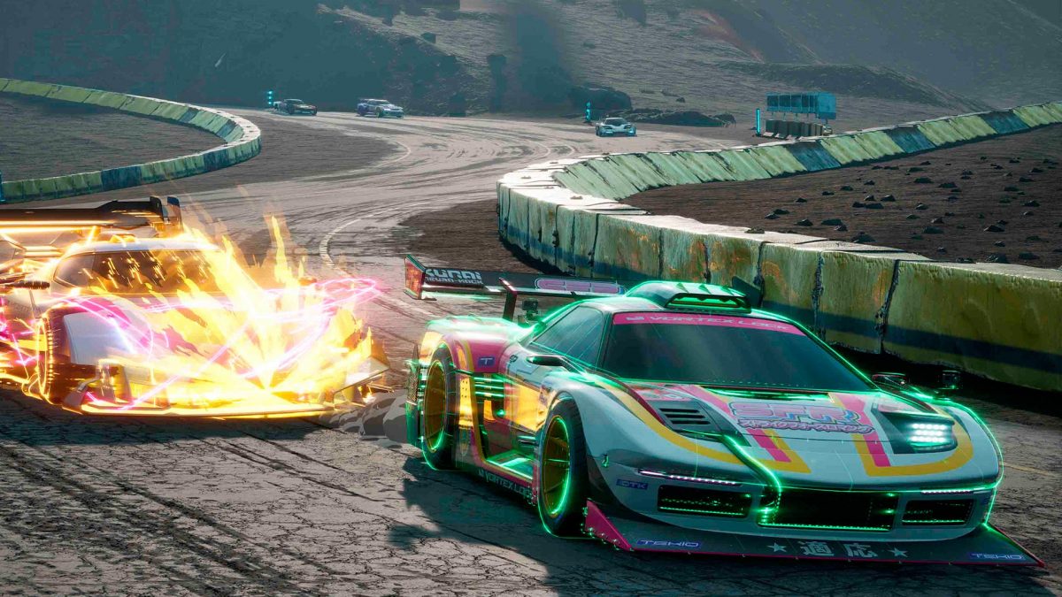Hasta aquí la parte tradicional de la conducción de Screamer. Pilotar en este juego es una gozada; es algo que haremos con tranquilidad en los modos individuales que nos permiten competir contrarreloj a lo largo de varias vueltas o sin límite de vueltas si optamos por el modo de puntos de control, que llegará a su fin cuando seamos incapaces de alcanzar la siguiente meta volante antes de que el reloj llegue a cero. No obstante, la mayor parte del tiempo no estaremos solos en el asfalto. En Screamer no vale solo con conducir bien, tendremos que aprovechar todo lo que aporta el Echo System para luchar mientras conducimos. Es un sistema con una relevancia indiscutible en términos de argumento, una explicación verosímil de por qué podemos dedicarnos a estallar coches sin problema alguno y, sobre todo, la puerta de entrada a un gameplay tan caótico como divertido.