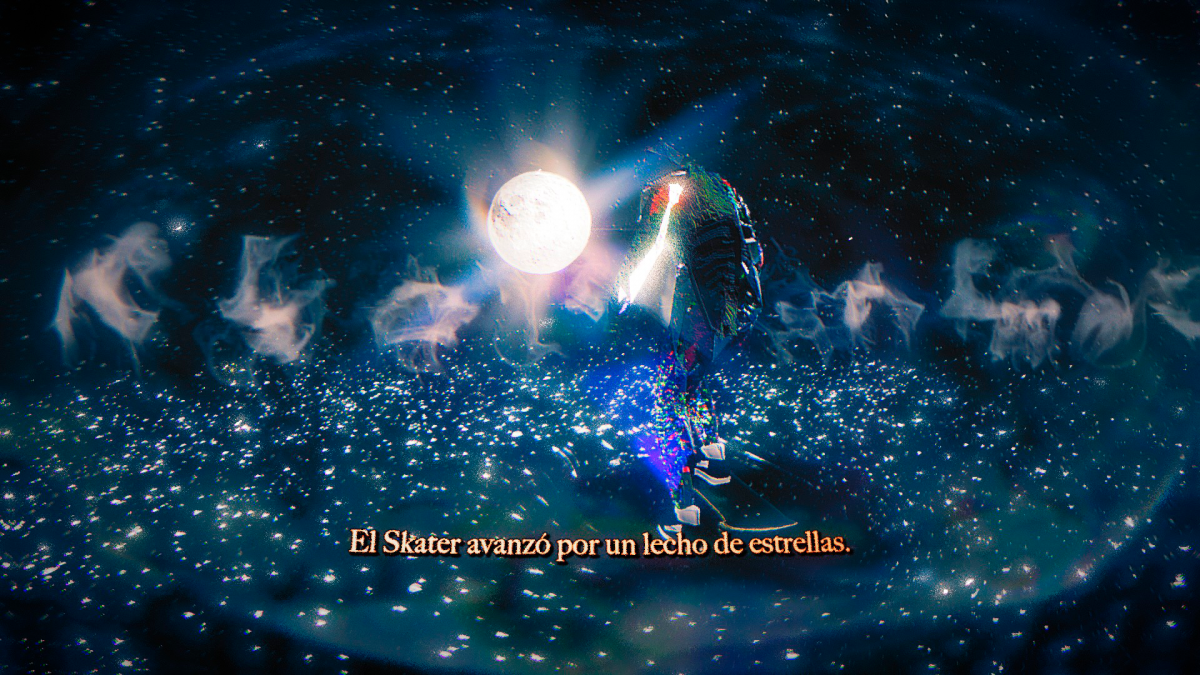 No hay competición alguna en un festival de demos, pero si la hubiera Skate Story estaría nominado en muchísimas categorías. Una propuesta sólida, con un control medido, un universo atractivo, una serie de rarezas que te invitan a continuar descendiendo por el agujero del conejo (de cristal), una mistificación del arte del skate a todas luces verosímil… un juego muy redondo. Menos mal que al fin tiene fecha de lanzamiento. Es normal que este juego nos haga pensar en Víctor, por algo suyo fue el avance de Skate Story hace ya unas cuantas lunas. No obstante, si he pensado en él al jugar a esta demo no ha sido ni por su texto ni por el skate en sí, sino por cómo está escrito. No me pasaba desde Death of the Reprobate, algo hay ahí, algo interesante, atractivo y sorprendente en un juego que podría prescindir de tener buena escritura y centrarse únicamente en el gamefeel al patinar, su apartado visual o la prometedora banda sonora. Se puede resumir en que está guapísimo.
