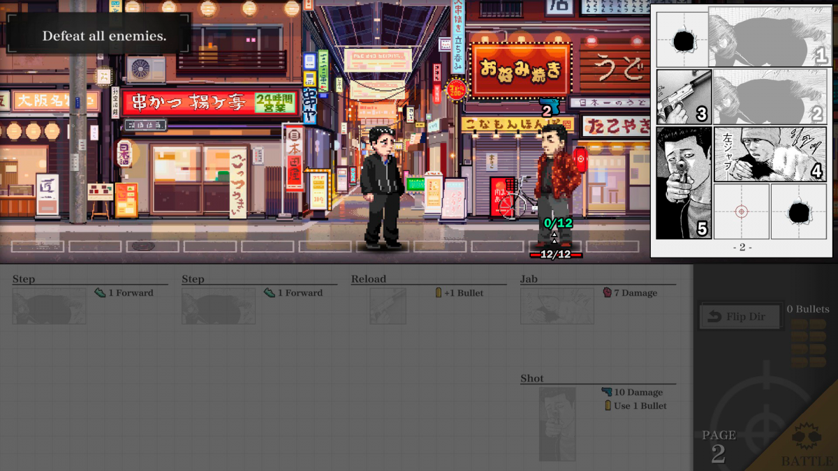 Una demo de unos 45 minutos cuyo progreso podemos trasladar a la versión final. Endiabladamente entretenido juego de mafiosos japoneses que se acuerdan de su aniki antes de desplomarse en el suelo. Combatiremos con puñetazos, patadas y muchas balas, todo ello en función de los paneles de nuestro mazo y cómo los coloquemos a lo largo de las cinco páginas del manga que dura cada enfrentamiento. No tenemos barra de vida, pero cada impacto agujerea una de nuestras cuadrículas, esenciales para trazar cualquier estrategia; por suerte conseguiremos cinta adhesiva que nos permita reparar los boquetes. A lo largo de tres mapas, cada uno con su jefe final, conseguiremos nuevos paneles, mejoras de los ya existentes y todo lo necesario para terminar con éxito la misión, especialmente experiencia para saber a quién conviene eliminar primero en este combate por turnos bidimensional. Los dos minijuegos que hemos podido probar son la guinda del pastel: uno de velocidad de reacción para protegernos de un oso y otro de pulsar un botón u otro del ratón para mandar el emoji correspondiente en la conversación por Line, ¡perfecto!