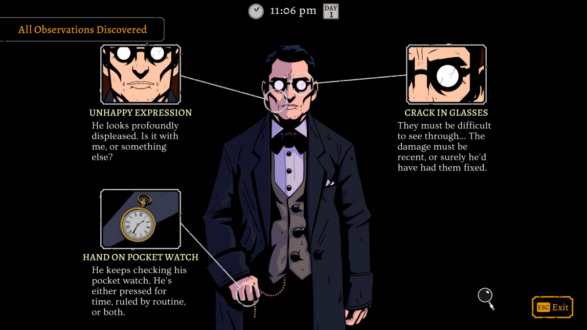 Una persona ha desaparecido tras su paso por un hotel del oeste de Irlanda, poco antes del comienzo del siglo XX. Nos corresponde, a cambio de una generosa suma de dinero, investigar la desaparición de Evelyn Deane en un edificio repleto de detalles de debemos observar con atención y relacionar entre sí para aprovechar las deducciones en las conversaciones con los posibles sospechosos. Cada acción supone una inversión en la moneda más valiosa de todas: el tiempo. Un inicio muy claro para comprender las distintas mecánicas de investigación que podremos encontrar en este juego que está muy cerca de su publicación. Hay algo en su estilo visual que puede recordar a Blue Prince, más allá de compartir editora, claro.