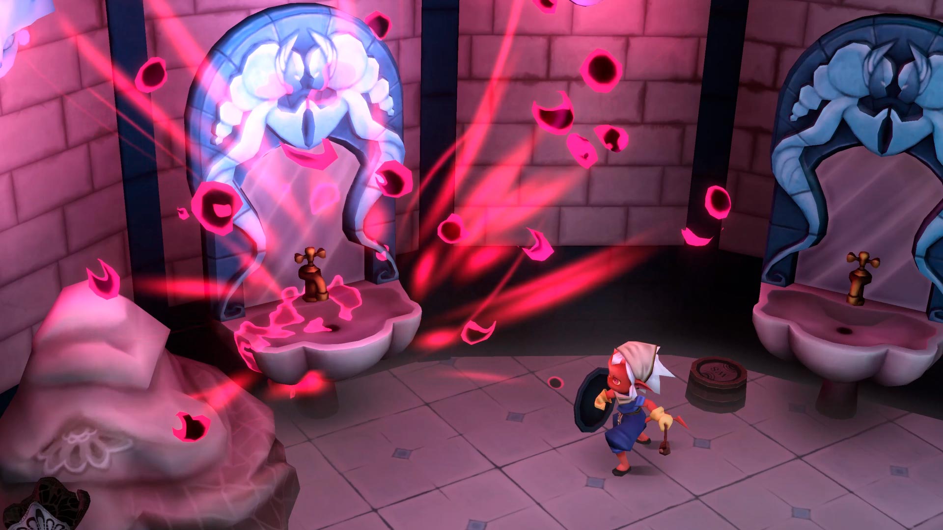 G Tengo bastante claro cuándo empezó a tener sentido. Al principio no sabes qué juego estás haciendo y de repente lo sabes. Fue tras una pruebecita en un nivel en el que estábamos probando las mecánicas de exploración, estábamos limpiando un objeto de aura y hay veces en la que este aura se rebela y te lleva a una arena de combate. La arena de combate me sorprendió, me salió un patrón de bullet hell. Al ganar la batalla sales de nuevo al mundo de exploración, el objeto se limpia y puedes seguir con la exploración. Y de repente me dije «el juego tiene sentido, por fin». Sentí como los músculos de los hombros y del cuello y de la cabeza se relajaban. Y me dio un bajón, pero fue de toda la tensión que había acumulado.