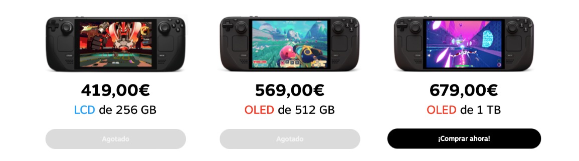 La desaparición de ese modelo supone, a efectos prácticos, un encarecimiento del cacharro: si ya no se puede comprar el modelo de 419€, la Steam Deck más barata es la OLED de 512 GB, que se mantiene a 569€. La maquinita con 1TB de almacenamiento, la única disponible en el momento de escribir esto, ya son 679 boniatos.